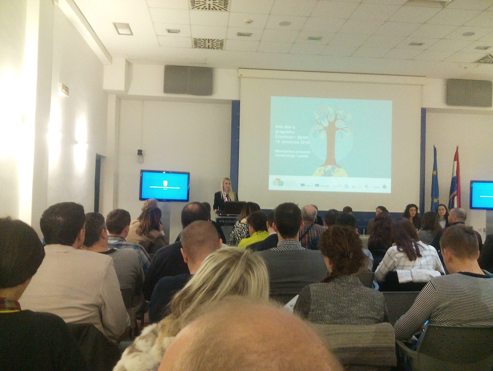 Cilj info dana bio je predstaviti mogućnosti korištenja potpora u okviru programa Erasmus+:Sport svim zainteresiranim dionicima i potencijalnim korisnicima programa u Republici Hrvatskoj.